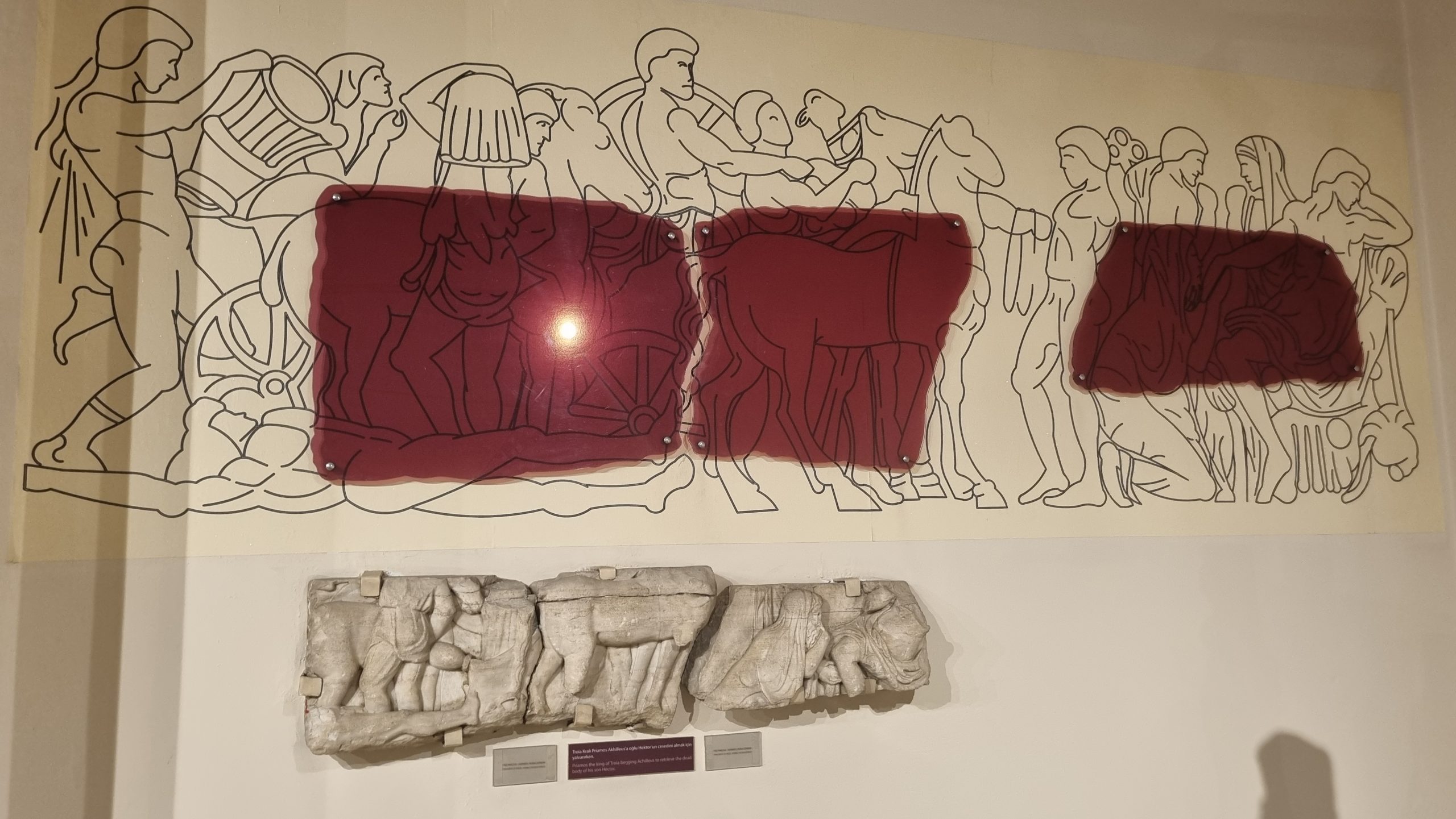 Müzede gördüğünüz bu kabartma, o yoğun duygu anını, Priamos’un diz çöküşünü ve Hektor’un cenaze arabasına yüklenişini çarpıcı bir şekilde yansıtıyor. Orijinal eserin yanında yer alan çizimler kayıp parçaları hayal etmemize olanak tanıyarak eserin bütününü zihnimizde canlandırmamıza yardımcı oluyor.